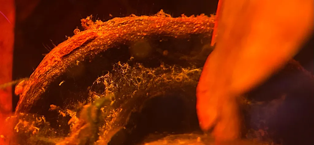 That’s biofilm and fungi—what we call the “goo phase.” It’s one of the clearest signs that your aquarium is alive and functioning. These growths wax and wane naturally as botanicals decompose. They’re harmless, even beneficial, and will disappear on their own once microbial populations stabilize.