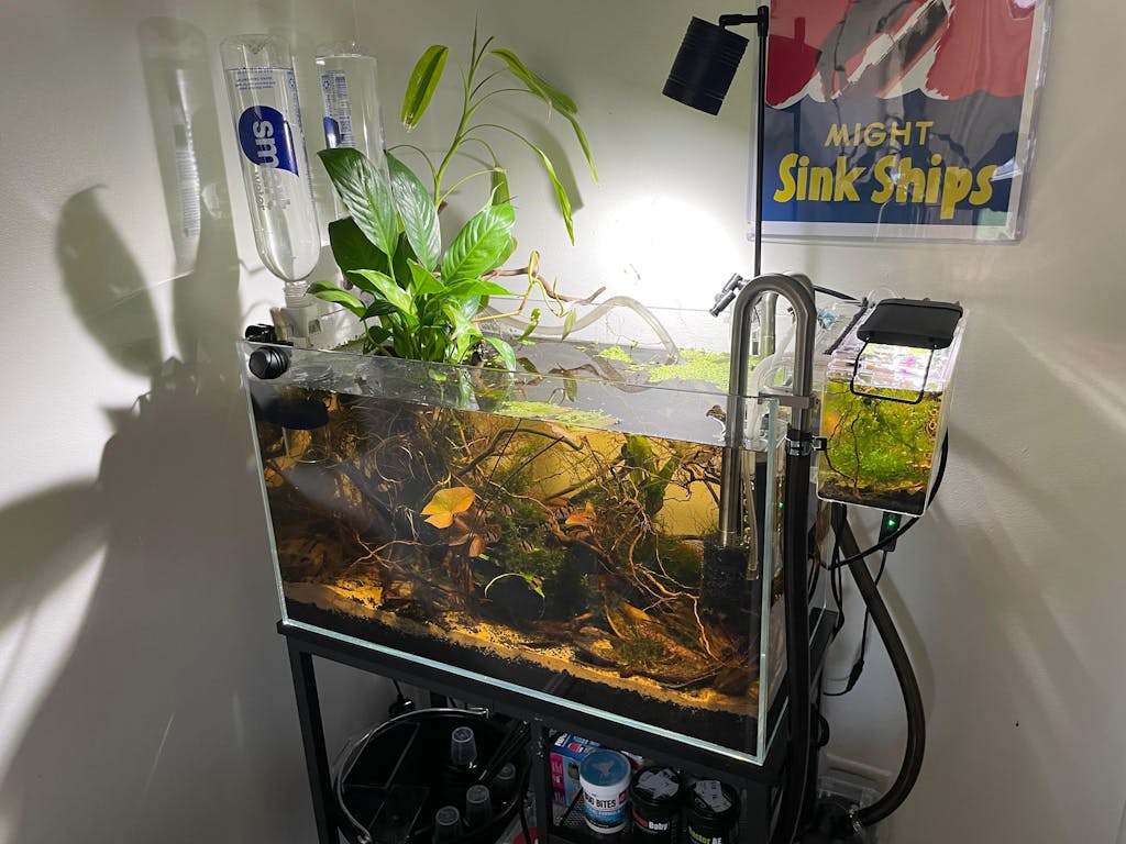 That’s biofilm and fungi—what we call the “goo phase.” It’s one of the clearest signs that your aquarium is alive and functioning. These growths wax and wane naturally as botanicals decompose. They’re harmless, even beneficial, and will disappear on their own once microbial populations stabilize.